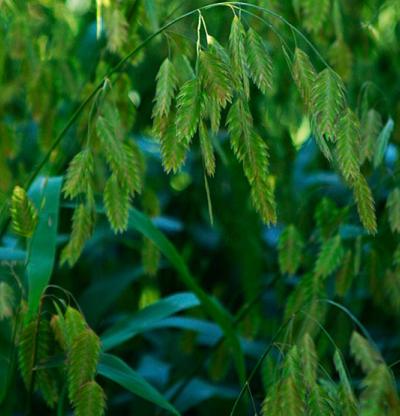 Northern sea oats (Chasmanthium latifolium) kaz-MAN-thee-um lat-ih-FOE-lee-um Sy